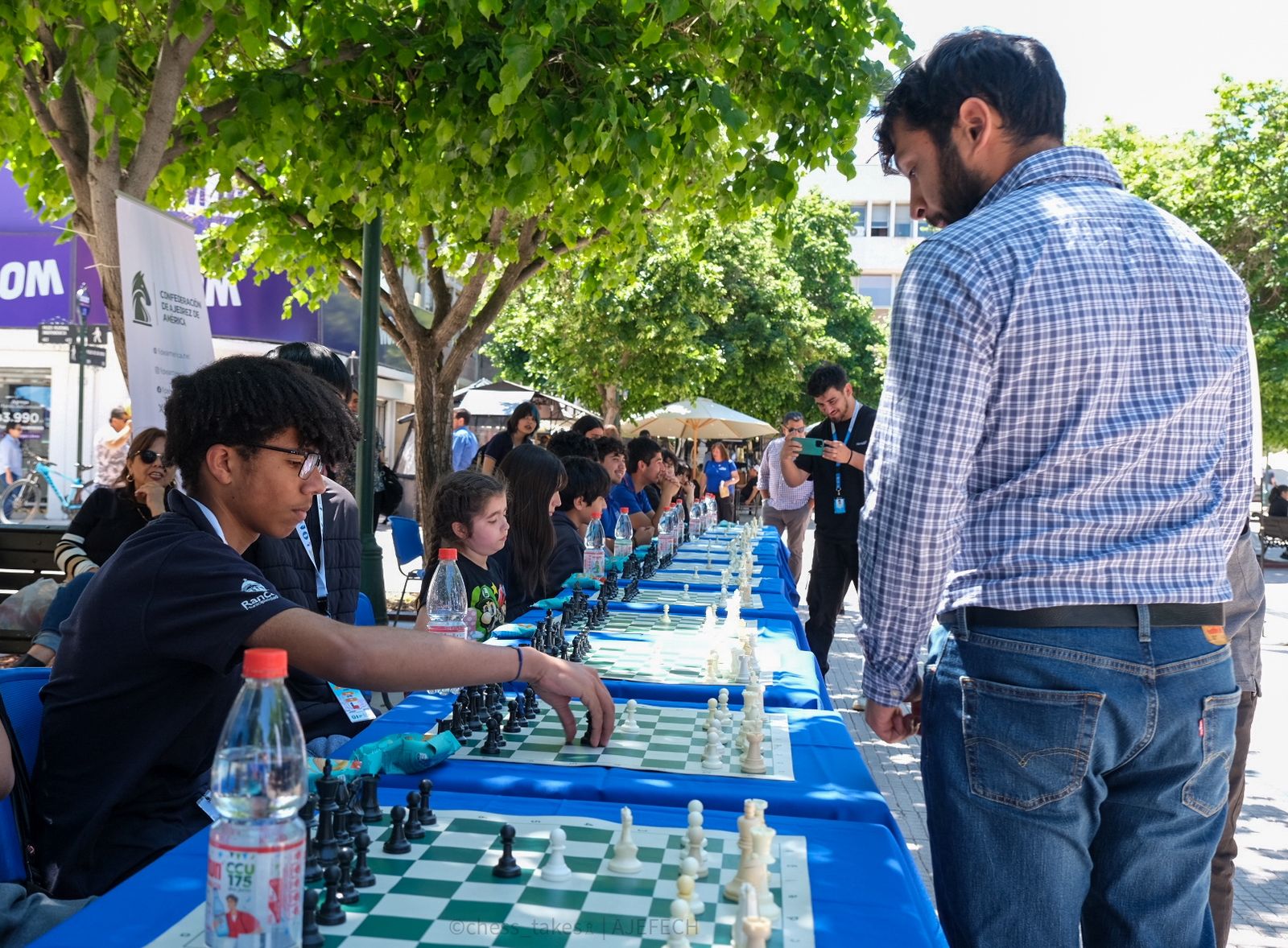 En el corazón de Rancagua y en el marco de la programación de actividades planificadas con motivo del Campeonato Sudamericano de Ajedrez que se desarrolla en la ciudad del Libertador Bernardo O’Higgins, el Campeón Nacional y Maestro Internacional Matías Pérez Gormaz se enfrentó a veinte estudiantes de colegios municipales en una emocionante simultánea de ajedrez.