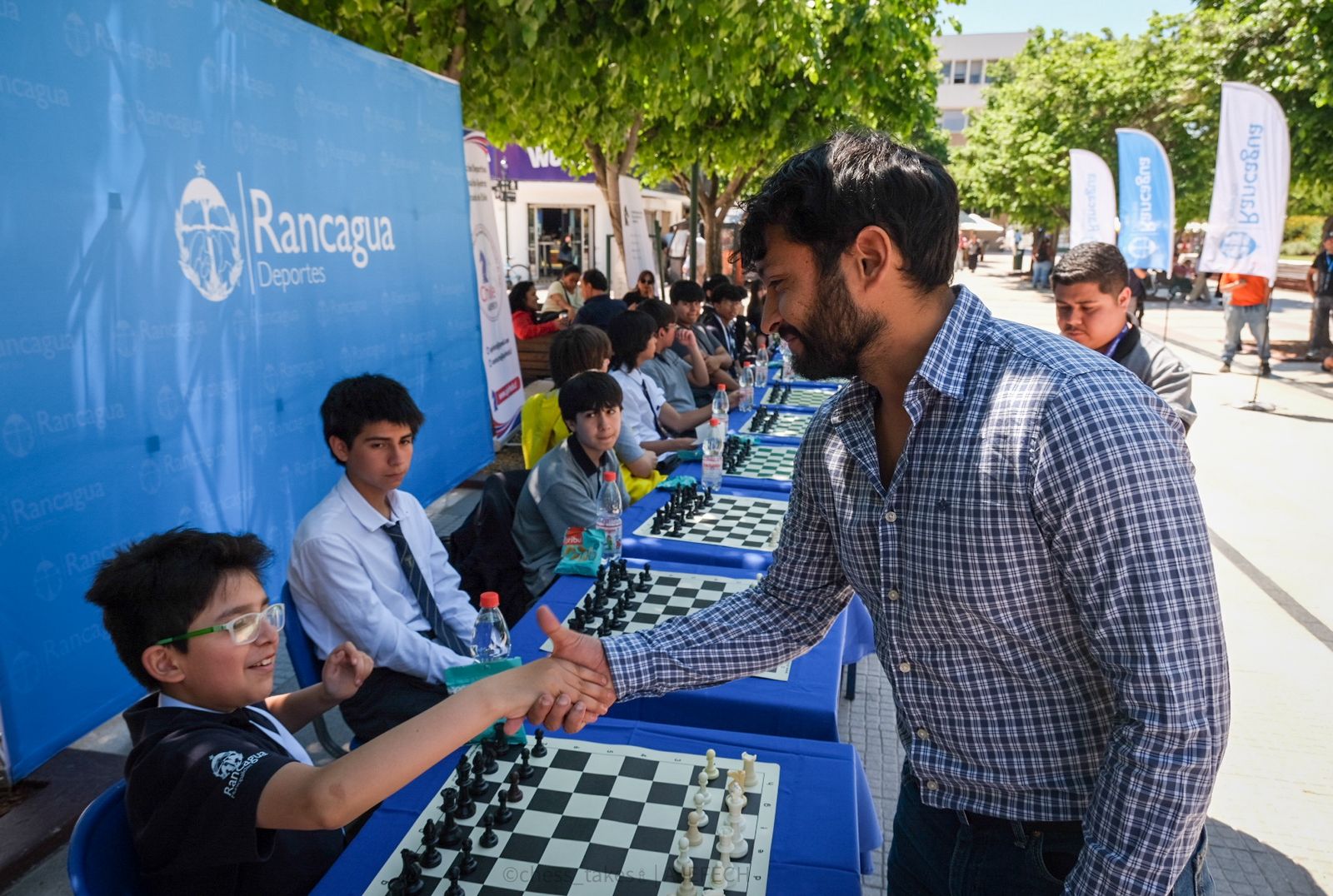 En el corazón de Rancagua y en el marco de la programación de actividades planificadas con motivo del Campeonato Sudamericano de Ajedrez que se desarrolla en la ciudad del Libertador Bernardo O’Higgins, el Campeón Nacional y Maestro Internacional Matías Pérez Gormaz se enfrentó a veinte estudiantes de colegios municipales en una emocionante simultánea de ajedrez.